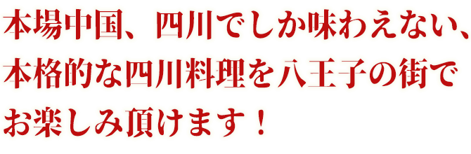 本場四川料理人直伝・良質な素材を活かした四川料理で、お客様をお迎えします。 美味しさと、健康を追求し、ボリュームたっぷりの料理をお求めやすくご提供しております。